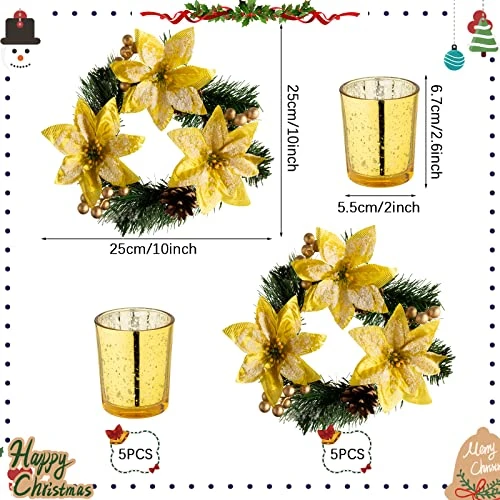 - Size Details: the Christmas candle rings are approx. 25 cm/ 10 inches in diameter, the candle holders measure approx. 6.7 x 5.5 cm/ 2.64 x 2.17 inches in height and bottle diameter, both of them are compact and lightweight, will not take up too much space to display