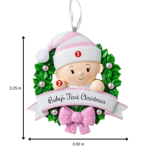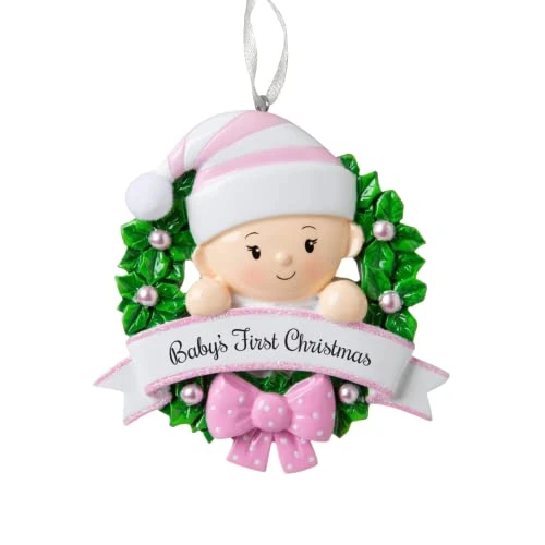 - Spread the holiday cheer with a personalized Baby Girl in Wreath ornaments for Christmas tree ornament that will be the most unique and heartwarming presents you could find. Our Christmas ornament is a thoughtful and memorable gift for your friends, family members, or yourself!