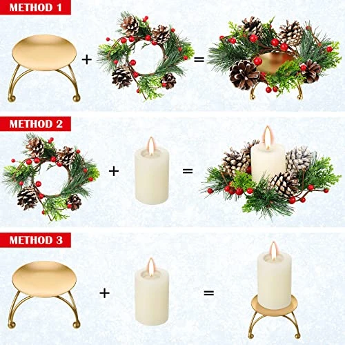 - Small and Lightweight: the Christmas candle wreath is approx. 17 cm/ 6.7 inches in diameter, and the pillar candle holder is about 6.5 cm/ 2.6 inches in diameter and 4.7 cm/ 1.9 inches in height, the small size is easy for you to hold and place