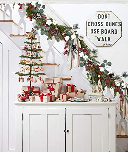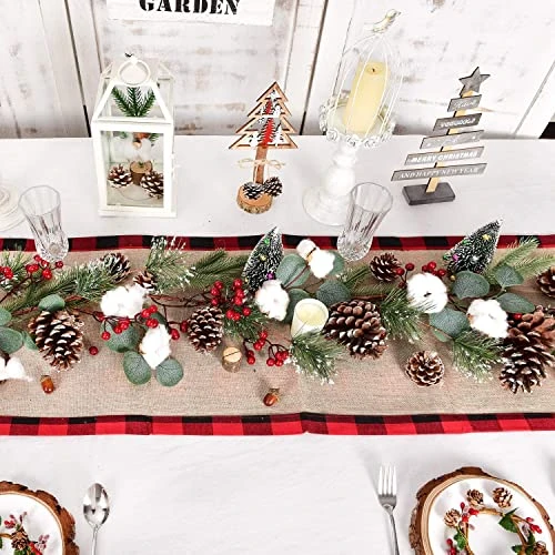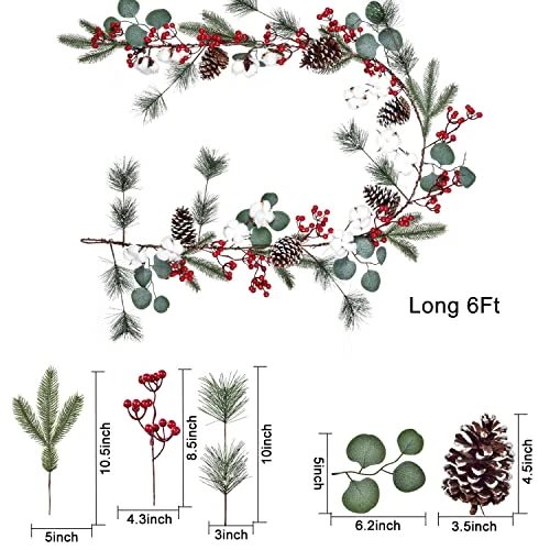- 🎄Variety of elements: Blooming with festive style, this garland features a beautiful blend of realistic pine needles, spruce branches, berries, pinecones, eucalyptus leaves and cotton balls, full of holiday colors and Christmas charm!