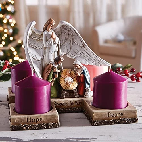 - FINELY DETAILED AND SCULPTED: Hand painted Holy family are watched over and protected by an angel; inscription reads “Hope, Prepare The Way, Peace, Joy and Love”