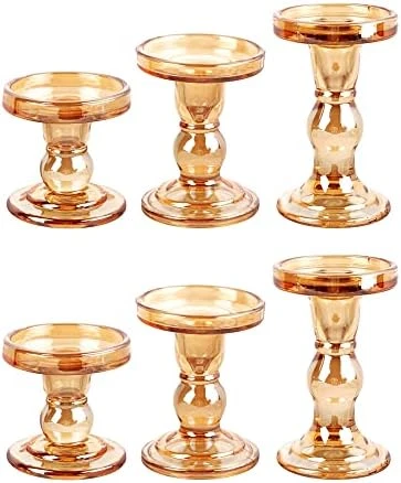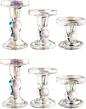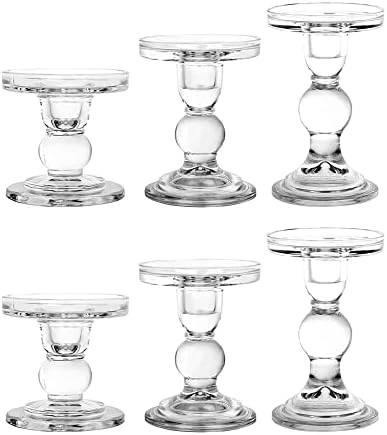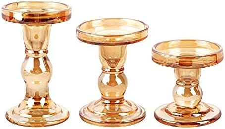 - Glass candle holder.Features candle holders in varying heights, designed with elongated bodies and round tiered bases and are constructed from solid glass, making them extra durable and can last for a long time.
