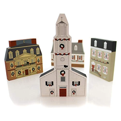 Cats Meow Village Colonial Virginia Christmas Wood 1990 LMT Ed Nos Retired – 7.00 Inches – Virginia Xmas S/4 – Multicolored
