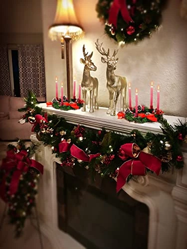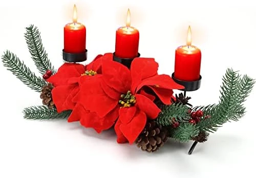 - 【Perfect Christmas Table Decor】Traditional Christmas Wreath is a great accessory for Christmas decoration, ideal for display on mantels, bookshelves, table centerpieces, cabinets, windowsills, churches. This candlestick holder will bring a vibrant and cheerful vibe to your home.