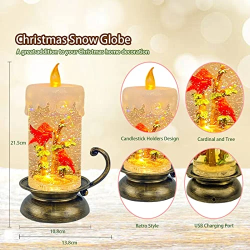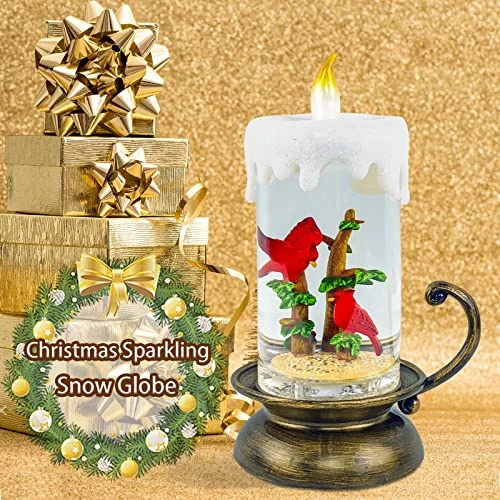 - 【Holiday Decoration】- Christmas snow globes battery operated is hand-made retro-style light, Christmas snow globe lantern become attractive for indoor desktops. this cardinal candle snow globe design is very suitable for adding fun to the holiday. Christmas glitter snow globe light can be placed at the entrance or in any room.