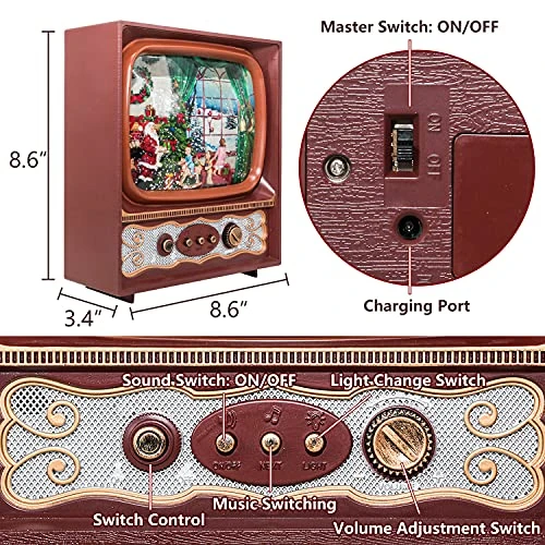 - 【Unique Christmas Gifts Design】There are scenes of Santa Claus, Christmas tree, reindeer and wooden horse in the retro Television. The warmth of the room is filled with warmth and laughter. A touching Christmas gift for a spouse, friend, or precious . It have seen a happy and pleasant smile on your family,friends’ faces when they received the Christmas lantern snow globe.
