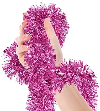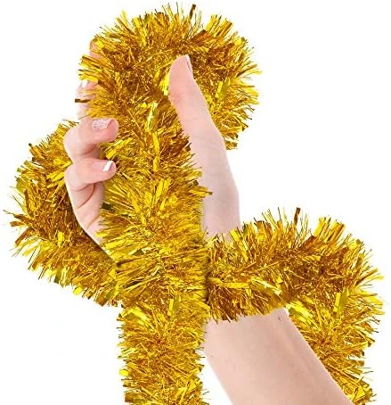 - VERSATILE DIY SUPPLIES: Create your own decor for any event with confidence using our foil tinsel fringe garland. Our hanging tinsel garland has a soft wire inside to allow it to be easily formed into any shape to be hung or used as centerpieces.