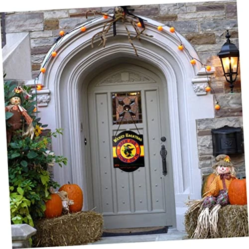 - Vintage porch signs: unique design easy to use- step up your halloween decorating game and spook up your party with this beautiful hanging door sign. this is perfect for your haunted house, this brings the halloween spooks right at your doorstep!