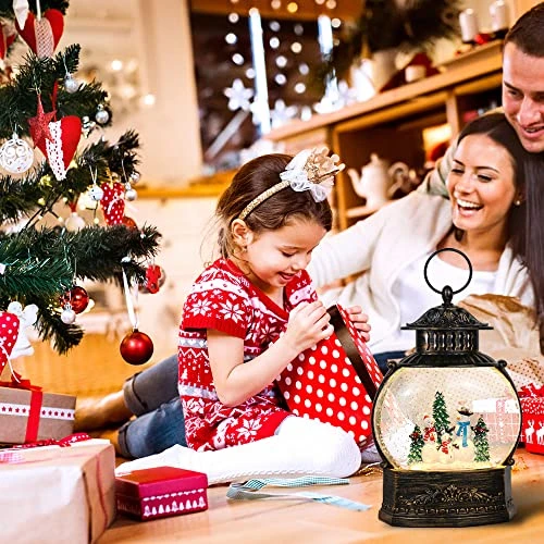 - [Power Supply]: ❤Included USB cable allows you operate the snow globe lantern without batteries. You can also operate it with 3 AA batteries (not included), so that you can place them anywhere you want to display with your Christmas decorations