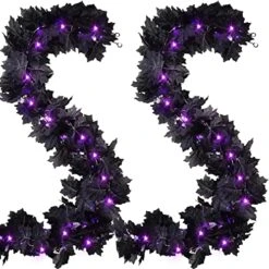 - Size:Each Black garland measures 5.9Ft/1.8M.Two shapes of black leaves,144pcs in total,half are 3.8 inches and half are 3.5 inches