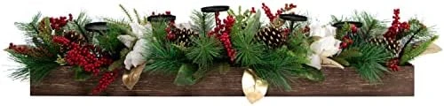 - DESIGNER FINISHES: Five pillar plates in a classic wood box overflowing with festive pine branches, red berries, and gold leaf accents will add elegance and warmth to your home. Recommended for pillar candles up to 3 inches tall (not included).