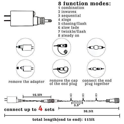 - 29V low voltage and UL588 certified LED lights: Funpeny plug in 300 LED string lights is 29v voltage, which is lower than human body safe voltage, and no danger for electric shock. Won’t over heat even used for a long time.