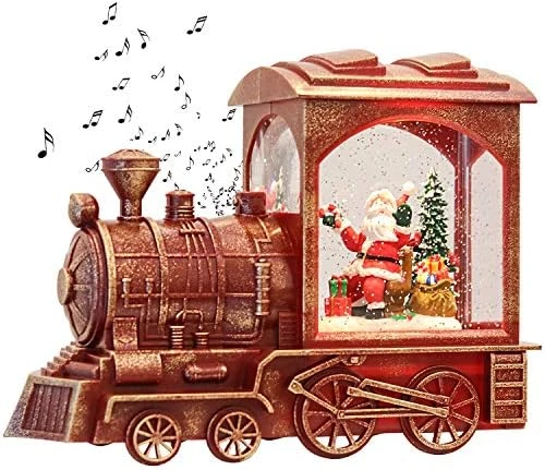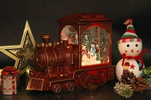 - CHRISTMAS DESIGN: This train snow globe lantern inside the snow globe features Caroling Snowmen and evergreen trees with a gold star. It will be a good decoration for your party, can create an unforgettable memory for you.
