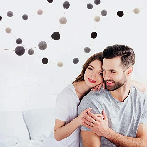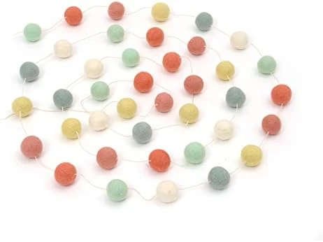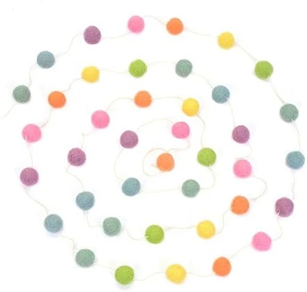 - TANGLE FREE – EASY TO HANG – No need to spend hours untangling this colorful party garland, because we’ve done all the work for you! When you open the package, you’ll find the felted wool balls strung on a soft white thread, FREE of any tangles. While, the ends are finished with small loops to make it easy to hang on a nail or hook.