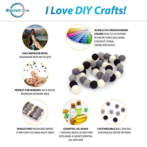 - CUSTOMIZABLE ROOM DECOR – Glaciart One has made sure there are NO knots in this felt garland string. You can customize spacing of these felt craft balls with a gentle tug and move them up and down the string. These felt balls will stay in place without any knots!