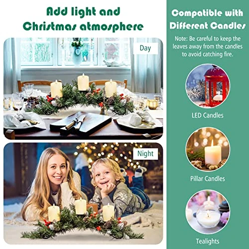 - Ideal Decoration – Combined with traditional green and red colors, this artificial centerpiece perfectly matches holiday decorations and enhances festival vibe. Besides, measuring 31.5″ x 11″ x 8″(L x W x H), this candle holder centerpiece is ideal for dining table, display shelf and more to add warm touch.