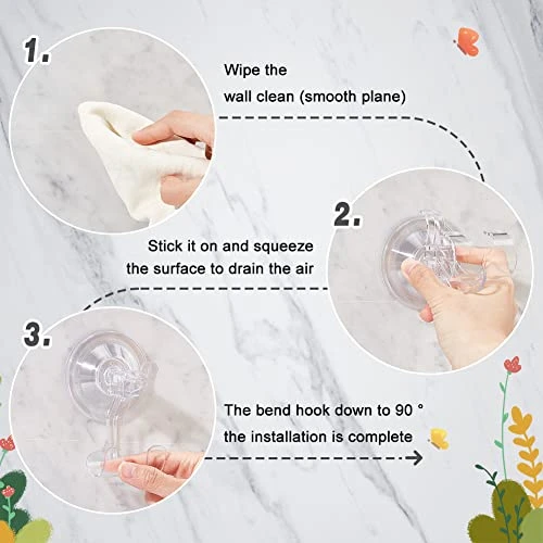 - ❤[Easy Installation]: No need extra tools, just a few seconds to finish it, clean the smooth surface with coming cleaning wipes, simply lift the hook into an upright position, push the suction cup and then click the hook down, the more suction you get the better.