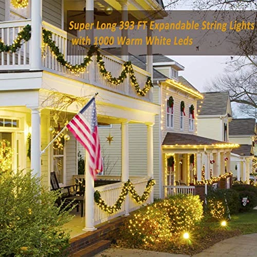 - 【393 FT Long String Lights & 1000 Leds】No need to extend, extra-long led christmas lights to decorate your yard, garden, Christmas tree, bushes, flowerbeds, etc.