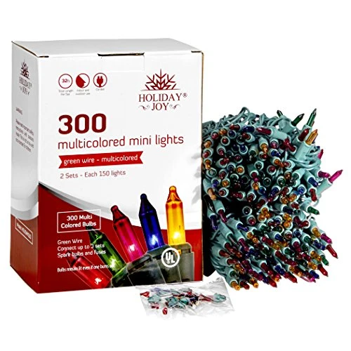 Holiday Joy Christmas Lights For Tree – 300 Count, Multicolor, Mini String Lights With Green Wire For Outdoor And Indoor Decorations