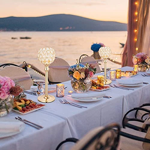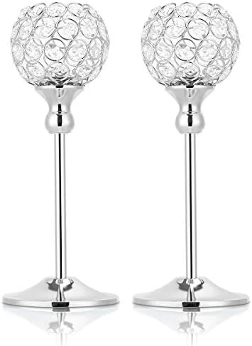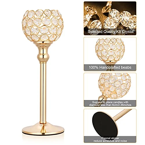 - MATCH ANY OCCASIONS: The entire candlestick is beautiful and generous, suits best on flameless electronic candle or tea light candle, the lights reflected bling bling from the crystals. Also can match with flowers, will be a nice centerpieces decorations for thanksgiving,new year,weddings,parties or other special holiday and events.