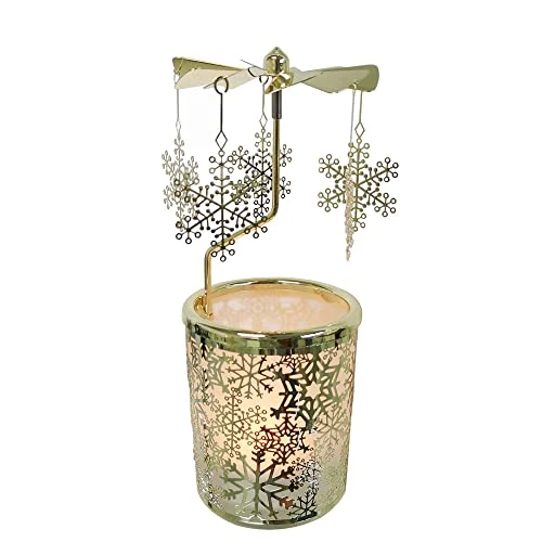 - This Carousel Snowflake Candle Holder, a great home decor for any holiday or occasion, shines brighter in candlelight and the golden pendant sparkles the room.