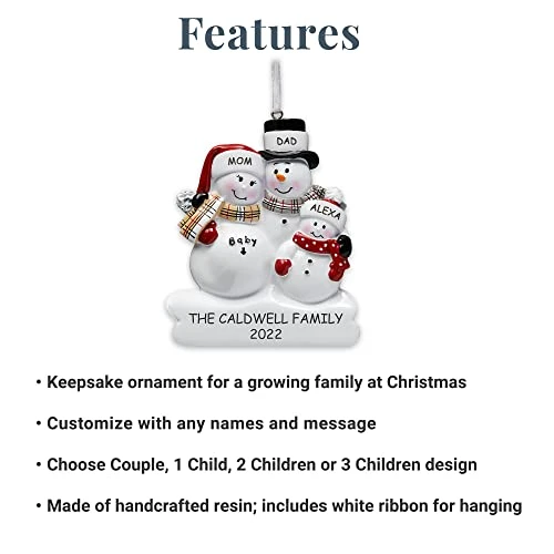 - UNIQUELY PERSONALIZED: So much cuteness! Customize your ornament with any 2–5 names up to 9 characters each, and any message up to 18 characters (expecting couple) or up to 21 characters (couple +1–3 kids).