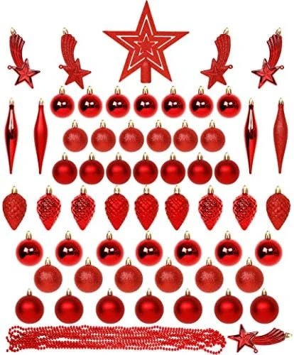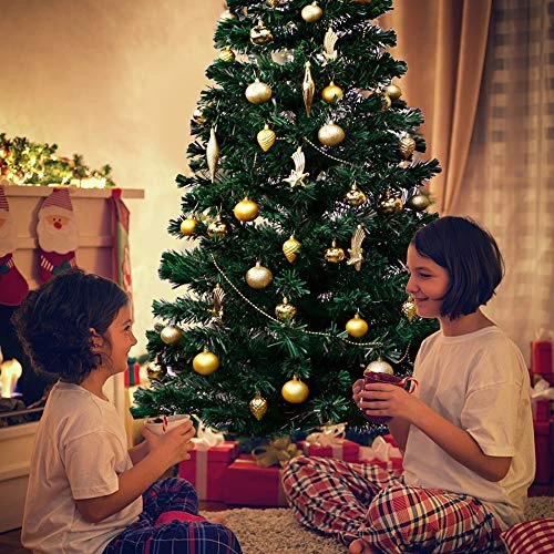 - ★Awesome Golden Appearance★: Lulu Home assorted Christmas ornaments set looks very beautiful and delicate. The Christmas balls are in golden with 3 awesome surfaces – matte, glitter and shiny. The tree top star, beaded chain and other accessories are very shinny and appealing on the tree.