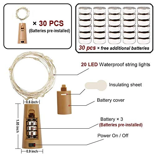 - 【Quality Batteries Pre-installed & Free Replacement Batteries】Every wine bottle cork lamp is powered by 3 pcs LR44 batteries(batteries already Installed) and 30 pcs replacement batteries(worth about $5), Offer 48 hours constant lighting, even longer if use with breaks, No need to power socket and convenient to use, perfect for your any idea.
