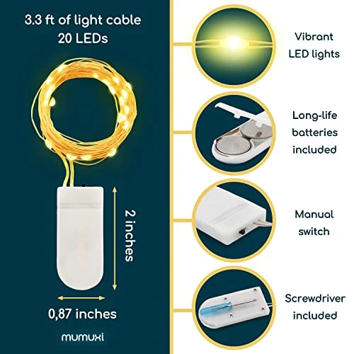 - 【Easy To Use & Safe To Touch】Each of our products is high quality at Mumuxi and this one is no exception. Save time and effort with replaceable batteries and a tiny on/off switch to turn them on for parties and switch ‘em off when everyone leaves. Incredibly low voltage makes these mini lights super safe in your home or place of work and carries no risks