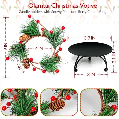 - 【Perfect Christmas Decorations】 These Christmas mini wreath interior opening is 3.5″ in diameter. The Christmas wreaths can perfectly fit a wide variety of candles. The Christmas candle holders measures 4″ L x 1.96″ H. Perfect size to fit into your Christmas home Decor.