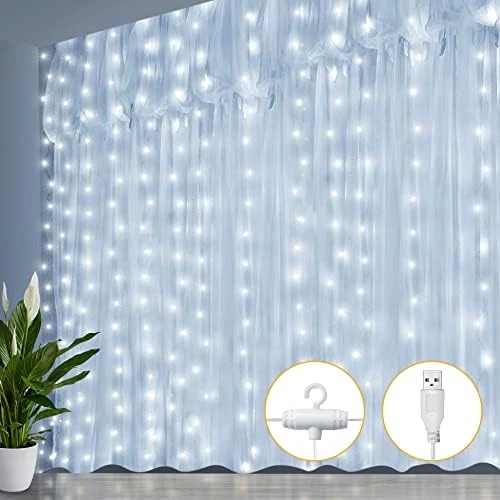 - [IP44 Waterproof] The fairy lights curtain are waterproof and you can hang them outdoor as backdrop for patio, garden, fence, yard, porch, gazebo, backyard, palm tree. However, the USB power is not waterproof, so be sure to protect it from moisture