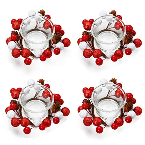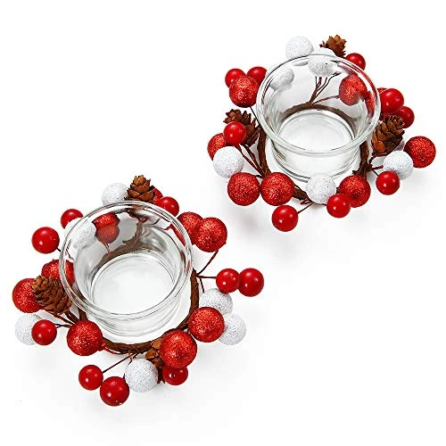 - HANDMADE ARTIFICIAL CANDLE WREATH: Add a regal pop of color to your home with our life-like, artificial berry and pinecone. Hang on any wall or door or use as a centerpiece with your favorite candle in the center