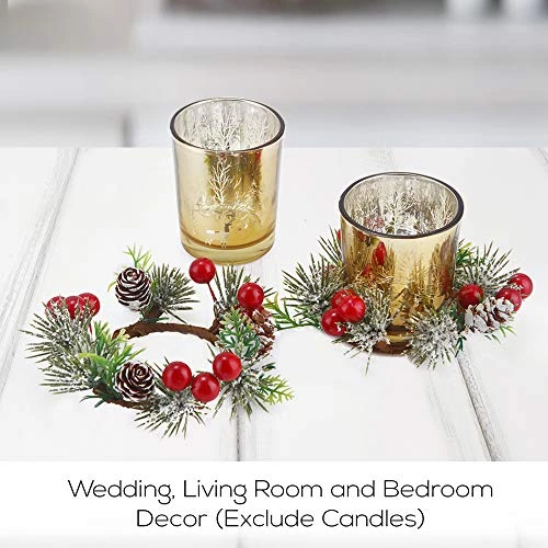 - CHRISTMAS CANDLE RINGS: This snowy candle ring adds a hint of seasonal style to your any room, the solid package keeps candle rings shape and safe, perfect for Christmas dining table, winter decorations, or Christmas gifts