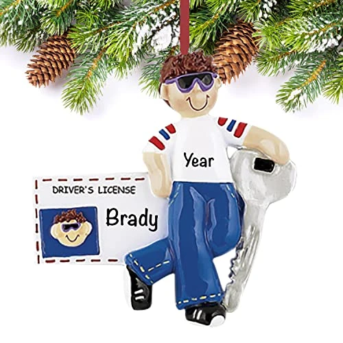 - Give the Gift of Joy – and savor life’s biggest moments as you celebrate your teen with these charming boy ornaments! Crafted with festive details and vibrant colors and personalized to your specifications, your driver’s license Christmas ornament will make your Christmas tree feel extra special and unique to your family home. Our new driver ornament 2022 is a reminder that an important milestone was reached. The ultimate gift for young drivers in your life for getting their first license!