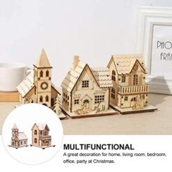 NUOBESTY Christmas Scene House Light Up Mini Wood Houses Village Collections Luminous Figurines Tabletop Ornaments For Xmas Decoration