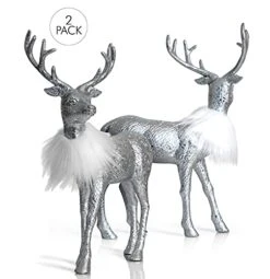 Ornativity Silver Glitter Christmas Reindeer – Holiday Party Deer Figurine Statues Dinner Tabletop Decorations Centerpiece – Pack Of 2