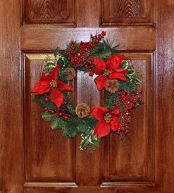 Worth Imports Artificial Christmas 18″ Spruce Poinsettia Berry Wreath, Green, Red