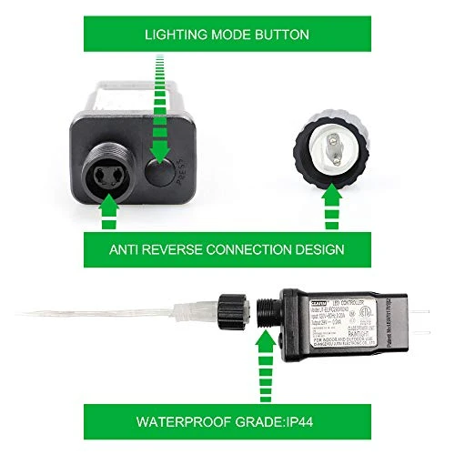 - Waterproof:The wires and lamps are IP44 waterproof, it can use outdoor or indoor, but the controller and plug are not, you need to do some protection