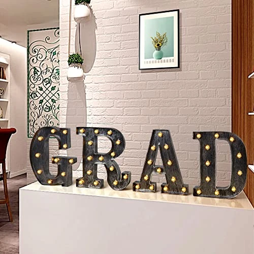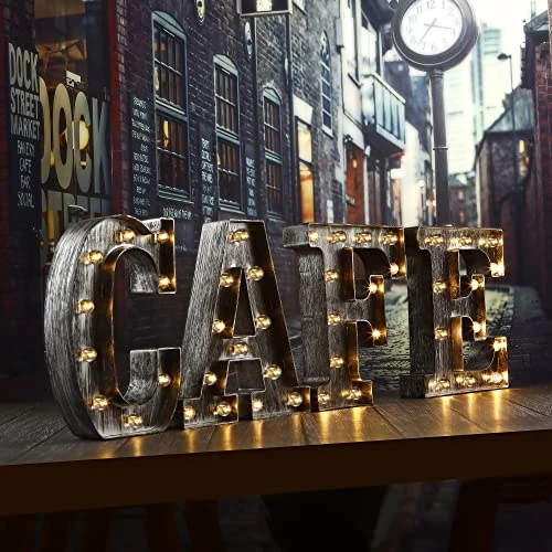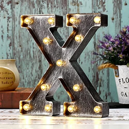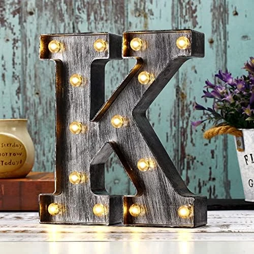 - Elevate your decor with our Light Up Letters. Standing tall at 22.6cm/8.9in, each letter’s unique width ensures a captivating display. Powered by two AA batteries (not included) with a convenient back switch, these letters are delightful gifts and cherished collectibles. The rugged vintage metal appearance exudes nostalgic charm, while the silky-smooth touch adds elegance. Unleash your creativity and embrace the allure of these letters, igniting joy and bringing them into your world.