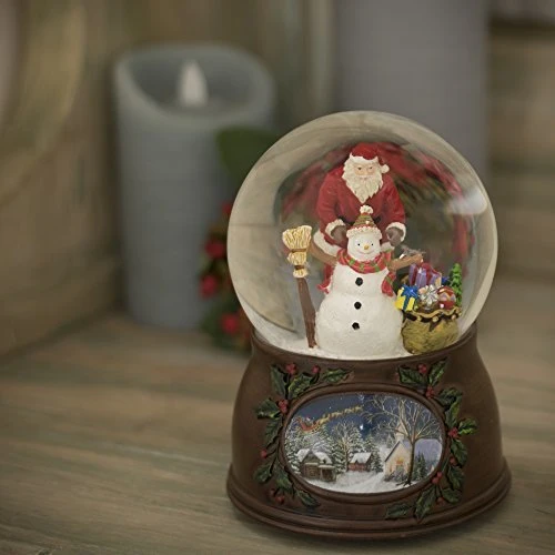 - 5 Inch Tall Musical Santa and Snowman Glitterdome Wood Look Base Windup 100 MM