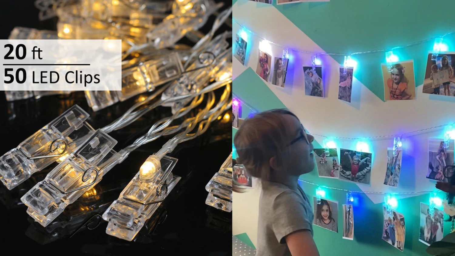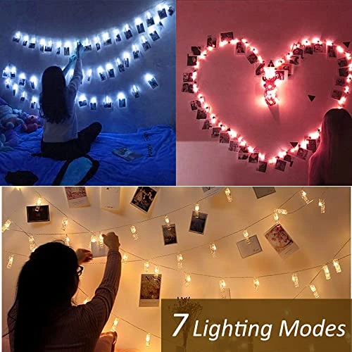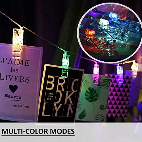 - [Unique Design] There are 50 clips on the 20ft/ 6m copper wire, the spacing between clips is 4.7 inches, lead length 10ft. There is a LED light on each transparent clip, small and cute.