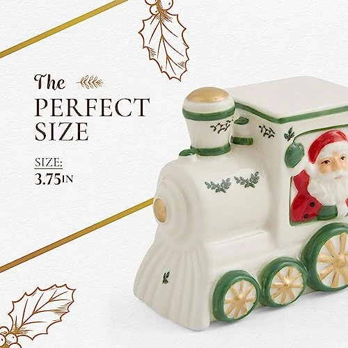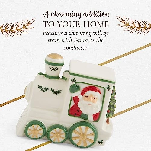 - Festive And Fun – Guess who pulled into the station? Add this adorable train with Santa as the conductor to your Christmas Village décor. Decorated with holly and gold accents, this is a perfect piece for any train lover. This Christmas-themed decor is an essential part of the holiday season that your family will love. Get in the holiday spirit with our fabulous Christmas village figurines!
