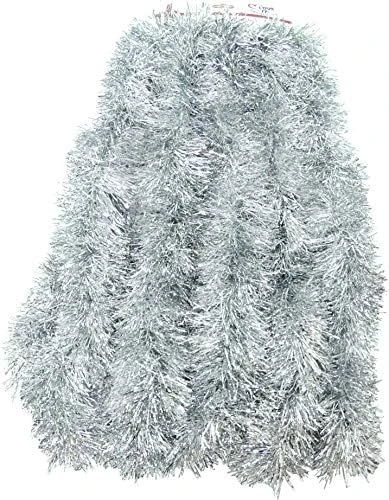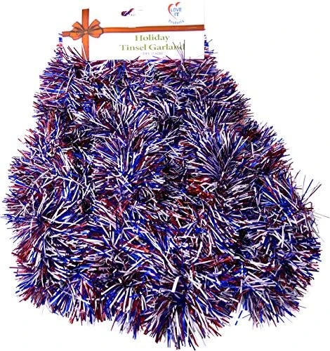 - DECORATIVE: This shimmering fine foil tinsel decoration adds color and elegance to your home, office, public or private party decor. Available in a variety of rich assorted colors: Gold, Silver, Green, Red, and Blue.