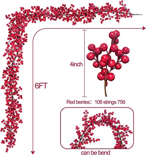 - [ Valentine’s Day Decor ] This thick Valentine’s Day red berries garland decorations for indoor, front door, fireplace, mantel, balcony, garden, table, stair railing, and so on