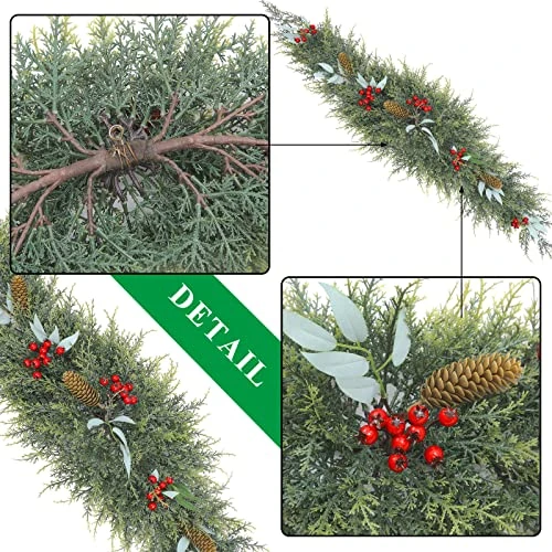 - ✨Durable Decorative Xmas Swag: Treated with the latest pressing technology to prevent leaves and pine needles from falling off the swag. This door swag will sustain its original colors and lifelike appearance for years. When winter is gone you can repack the swag with this box for better storage and reuse for the next year.