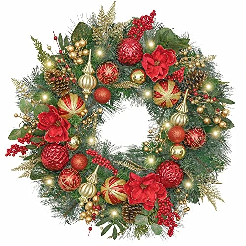 - 【Very Full and Large】- This 30” large Christmas wreath is full of Christmas balls, flowers, ribbons, pine needles and other rich elements.creating a luxurious scene, conveying festive feelings with luxury and beauty, and bringing festive atmosphere