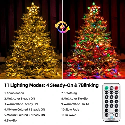 - Colors Changing Modes:This Christmas Tree Light comes with 3 Color light modes,You can set warm white, multicolor sepratively or set combination of warm white and multicolor.To meet your differet occassions needs.