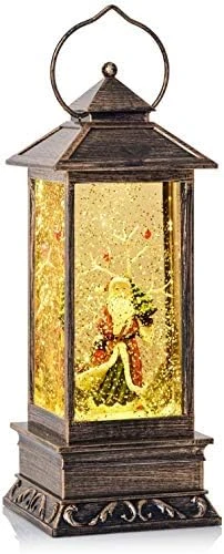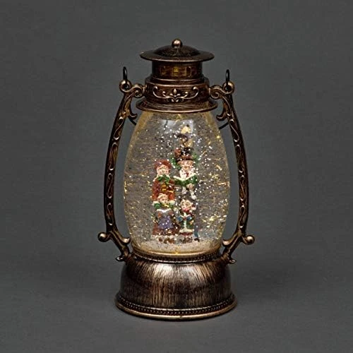 - Crafted in an antique style with a beautiful bronze-effect finish. Rectangle shape snow globe lantern. Power Source: 3 x AA Batteries (not included)/USB Cable (included). Material: Acrylic. It measures 28 x 12 x 12 Cm. Comes in nice colourful box to Gift.