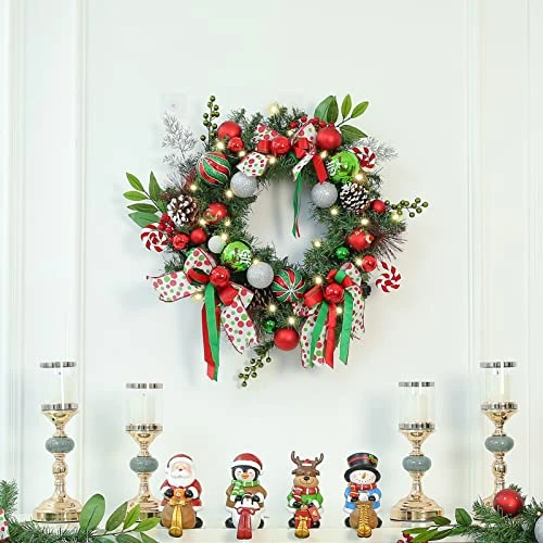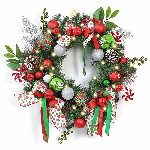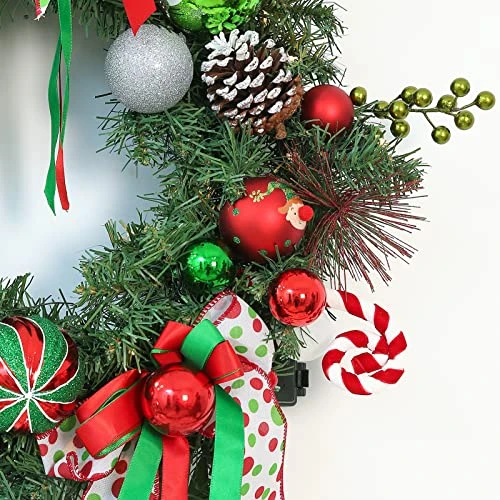 - [A Variety of Decorations] – This 24-inch Christmas wreath is all made up of Christmas balls, pine cones, green berries, polka dot ribbons, and other rich elements. Perfect for use indoor/outdoor, front door, window, wall, and more, with it, I believe your well-prepared Christmas decorations will look even more gorgeous this year.