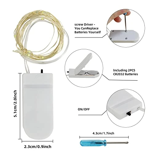 - Safety and Energy-saving: The fairy string lights powered by 2 x CR2032 batteries(included), 48 hours battery life with high brightness. The fairy lights are low energy consumption,no overheat, stay safe to touch.The soft lights also can protect your eyes.